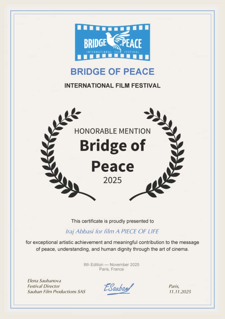 به گزارش ماه‌خبر، فیلم یک تکه جان به نویسندگی و کارگردانی ایرج عباسی، با تمرکز بر مفاهیم صلح، تفاهم و کرامت انسانی، توانست توجه داوران این رویداد معتبر جهانی را جلب کند و عنوانی ارزشمند را برای ایران و به‌ویژه جامعه فرهنگی بندرامام خمینی به ارمغان آورد.