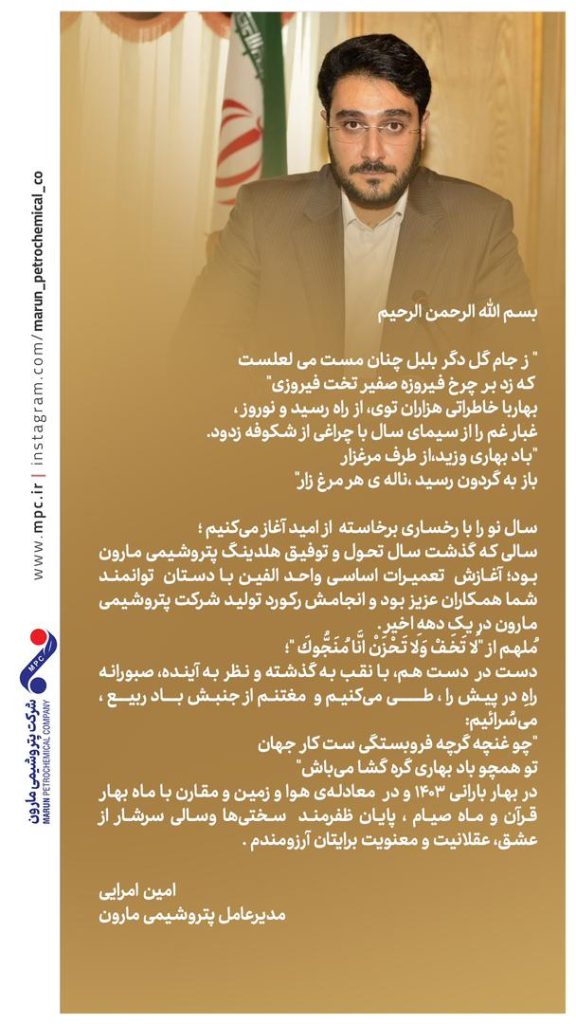 پیام تبریک مدیرعامل پتروشیمی مارون بمناسبت فرا رسیدن نوروز